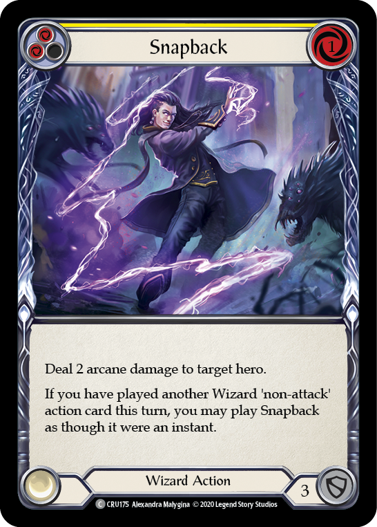 Deal 2 arcane damage to target hero. If you have played another Wizard 'non-attack' action card this turn, you may play Snapback as though it were an instant.