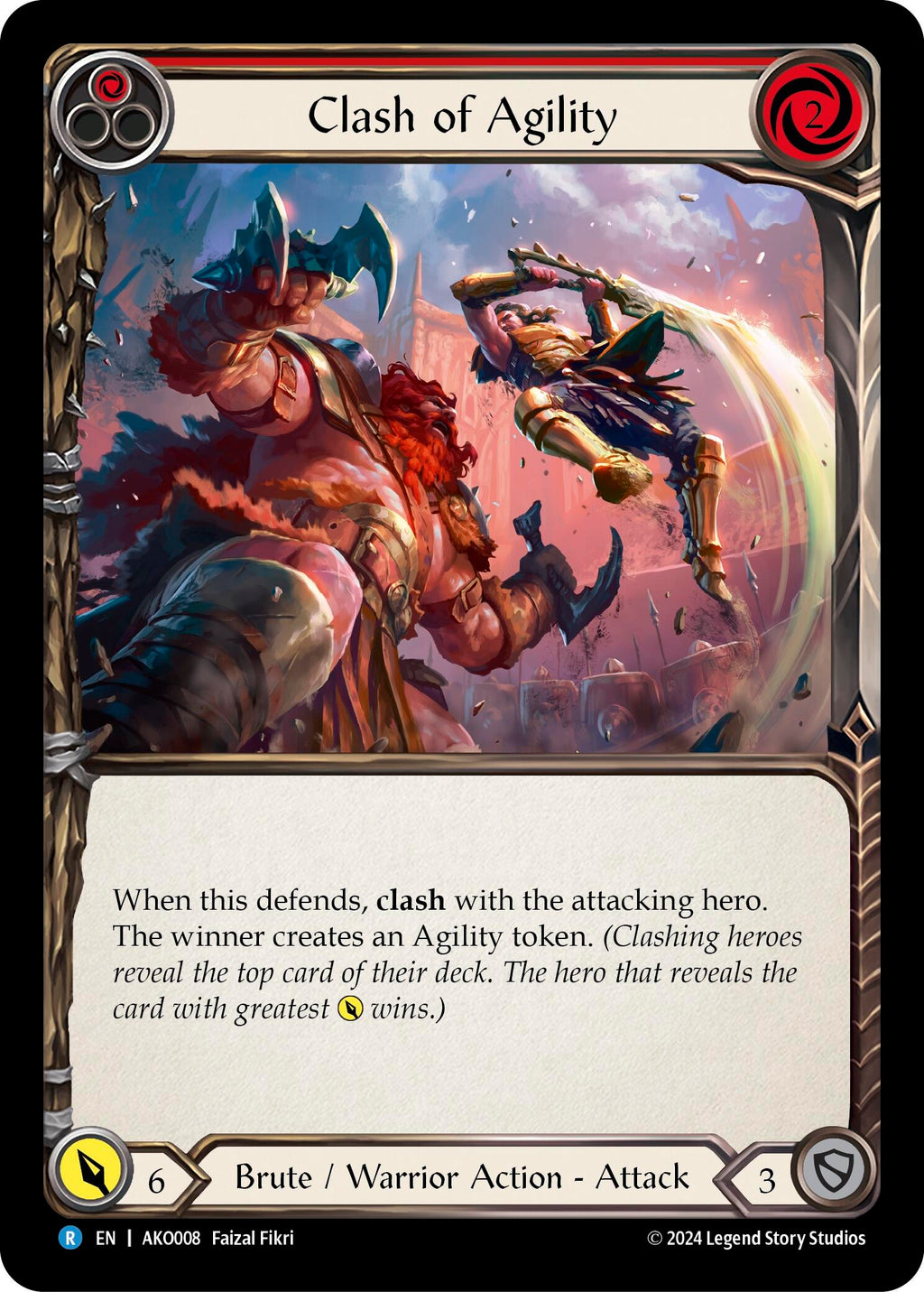 When this defends, clash with the attacking hero. The winner creates an Agility token. (Clashing heroes reveal the top card of their deck. The hero that reveals the card with greatest POWER wins.)