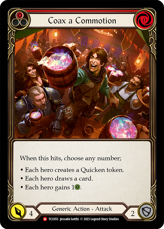 When this hits, choose any number; Each hero creates a Quicken token. Each hero draws a card. Each hero gains 1{g}.